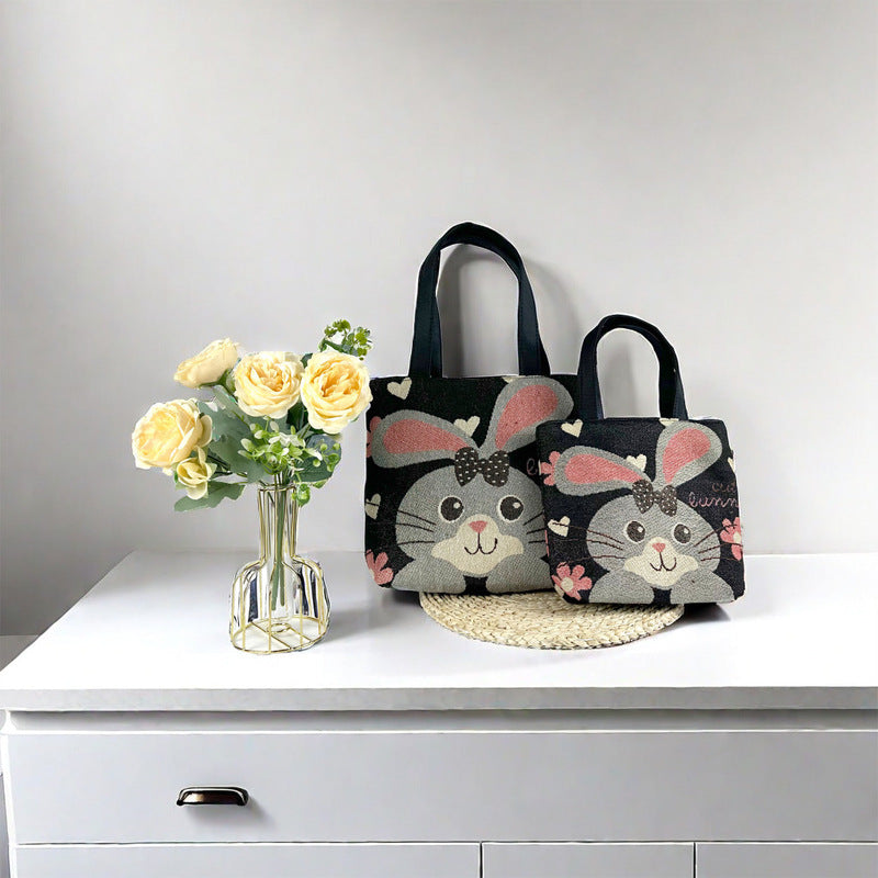 Elevate your everyday style with this adorable set of Big Ear Bunny Tote Bags, available in three convenient sizes to suit all your needs. The small size (20*7*18cm) is perfect for holding compact essentials, the medium size (28*8*23cm) offers versatility for everyday errands, while the large size (36*10*28cm) provides ample space for travel or shopping. Designed with an enchanting bunny face, soft felt ears, and playful accents, these bags combine functionality and whimsical charm. Durable and eco-friendly, they are perfect for daily use, gifts, or special occasions, ensuring you stay trendy wherever you go.