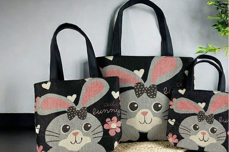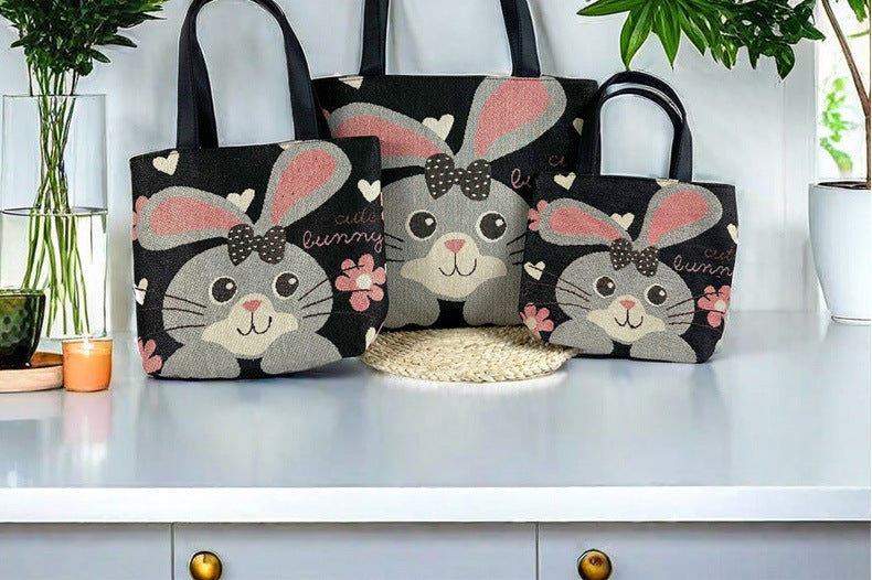 Big Ear Bunny Tote Bag Set – Versatile & Stylish (Small, Medium, Large) - Pack of 3